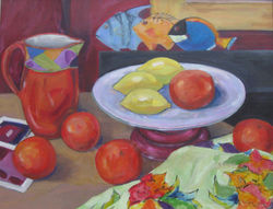 Paintings ranging from colourful still lives to dramatic landscapes.